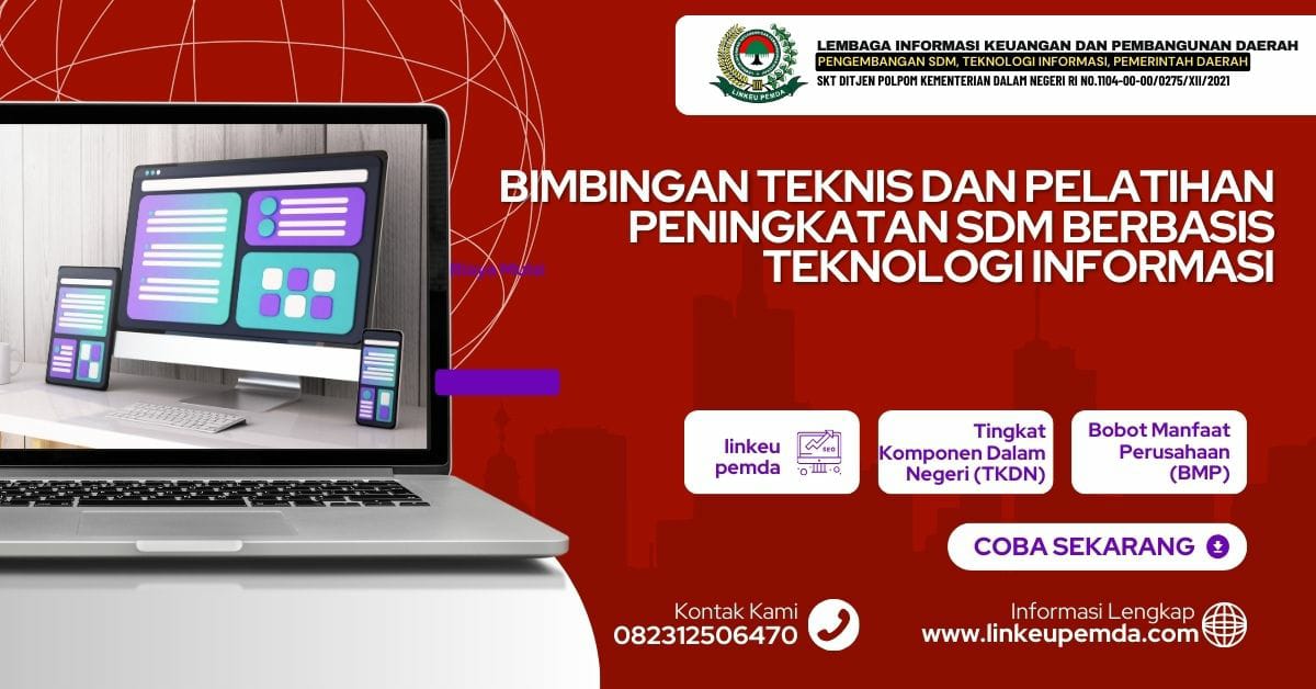 Sehubungan dengan hal tersebut diatas, kami dari Lembaga Informasi Keuangan dan Pembangunan Daerah (LINKEUPEMDA), Selaku penyelenggara kegiatan serta dukungan narasumber yang berkompoten dibidangnya, Mengudang Bapak/Ibu untuk mengikuti kegiatan bimtek nasional dengan Tema : “Bimtek Dan Pelatihan Peningkatan SDM Berbasis Teknologi Informasi” untuk informasi lebih lanjut dapat menghubungi: