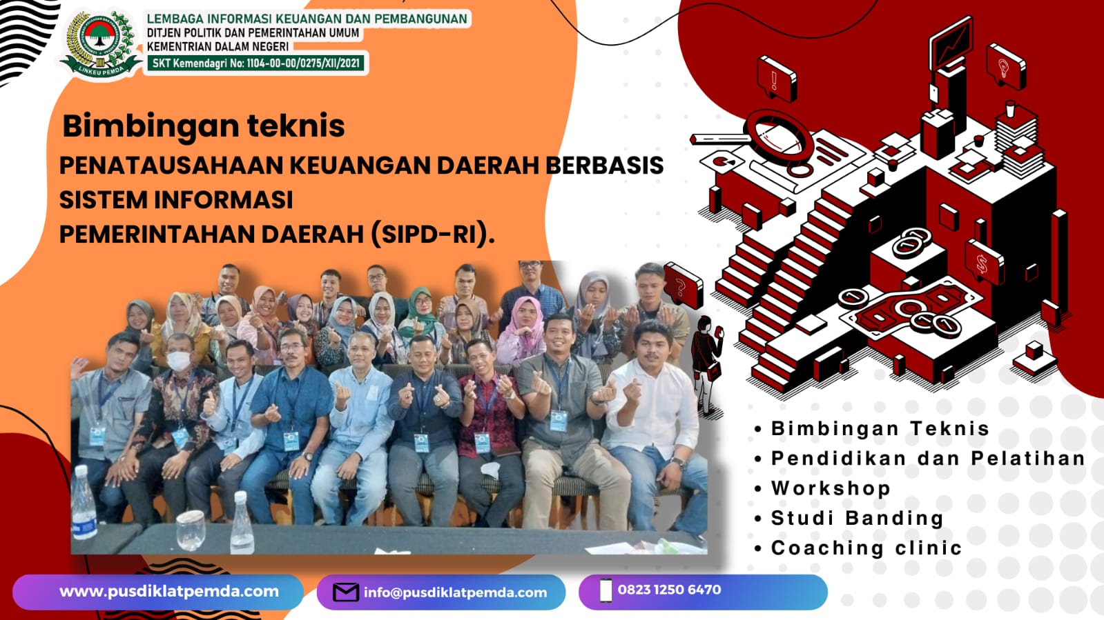 Sehubungan dengan hal tersebut diatas, kami dari Lembaga Informasi Keuangan dan Pembangunan Daerah (LINKEUPEMDA), Selaku penyelenggara kegiatan serta dukungan narasumber yang berkompoten dibidangnya, Mengudang Bapak/Ibu untuk mengikuti kegiatan bimtek nasional dengan Tema : “BIMTEK PENATAUSAHAAN KEUANGAN DAERAH BERBASIS SISTEM INFORMASI PEMERINTAHAN DAERAH (SIPD-RI)” untuk informasi lebih lanjut dapat menghubungi: