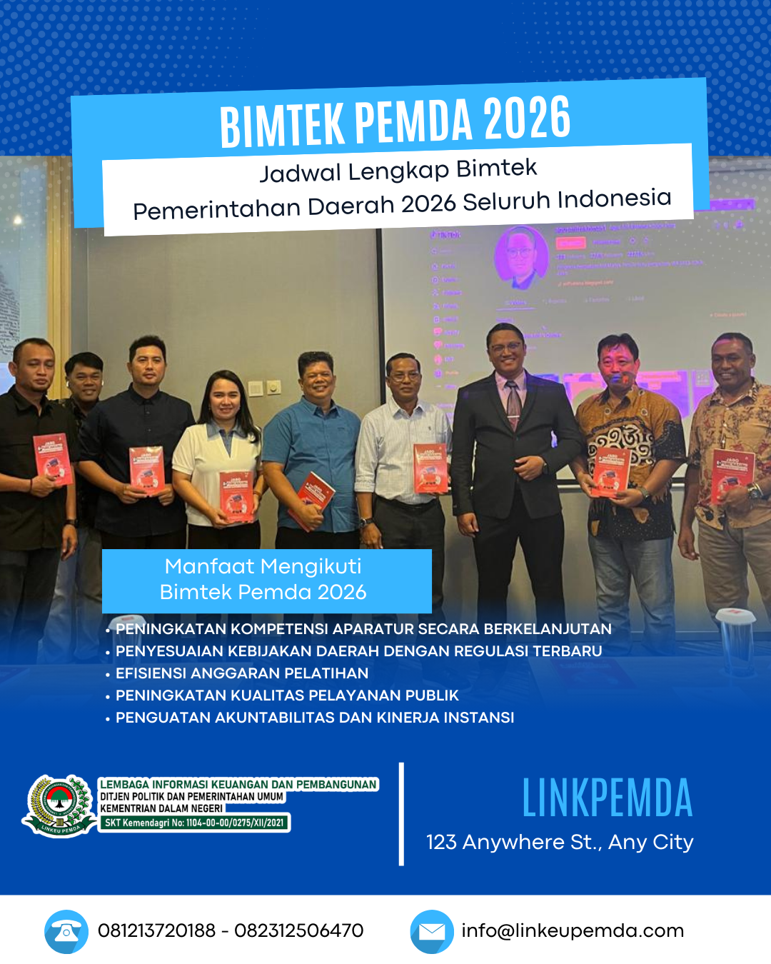 Jadwal Lengkap Bimtek Pemerintahan Daerah 2026 Seluruh Indonesia menjadi panduan penting bagi pemerintah daerah dalam merencanakan pengembangan kapasitas aparatur secara terstruktur dan berkelanjutan. Dengan memanfaatkan jadwal yang tersedia dan mengaitkannya dengan kebutuhan daerah, bimtek dapat memberikan kontribusi nyata terhadap peningkatan kualitas tata kelola pemerintahan.