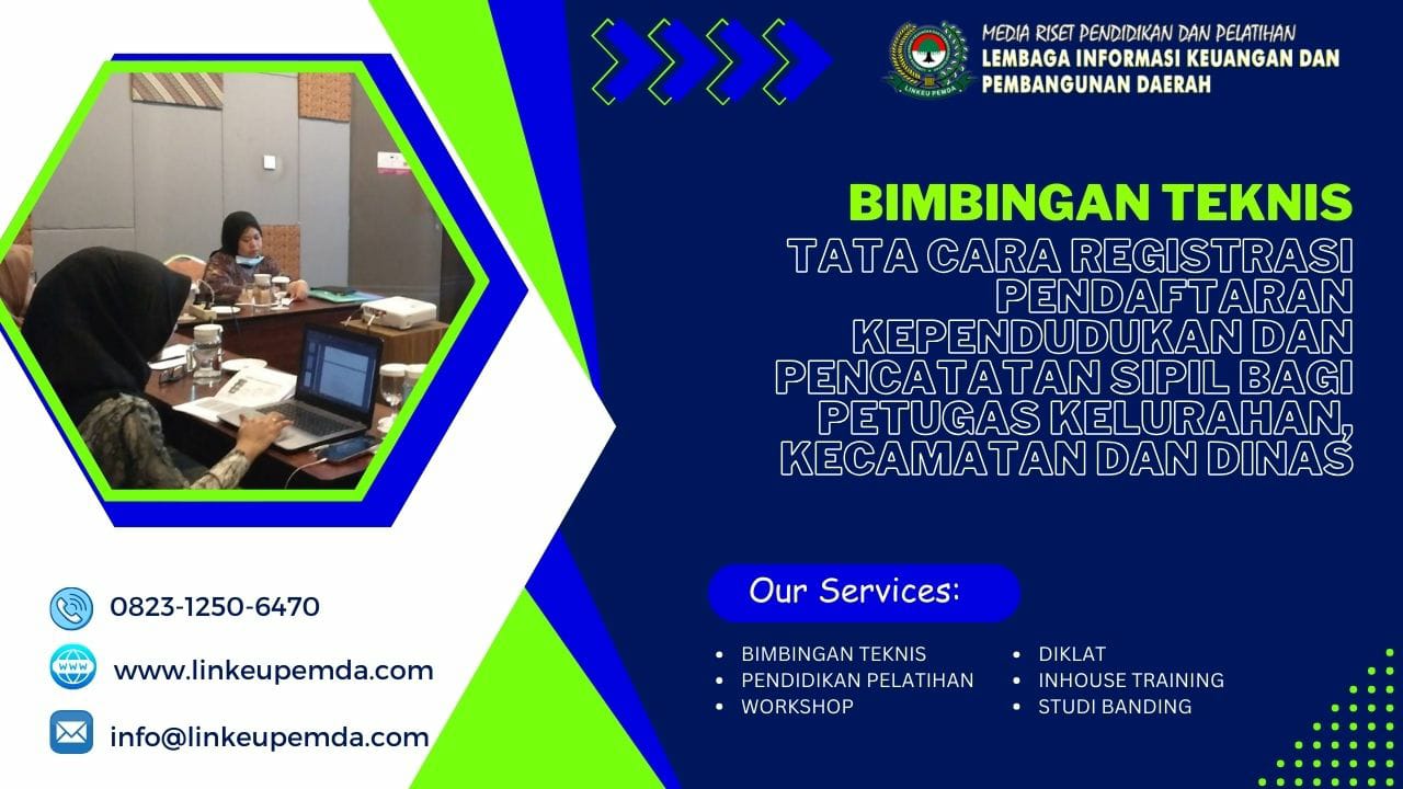 Sehubungan dengan hal tersebut diatas, kami dari Lembaga Informasi Keuangan dan Pembangunan Daerah (LINKEUPEMDA), Selaku penyelenggara kegiatan serta dukungan narasumber yang berkompoten dibidangnya, Mengudang Bapak/Ibu untuk mengikuti kegiatan bimtek nasional dengan Tema : “Bimtek Tata Cara Registrasi Pendaftaran Kependudukan Dan Pencatatan Sipil Bagi Petugas Kelurahan, Kecamatan Dan Dinas” untuk informasi lebih lanjut dapat menghubungi: